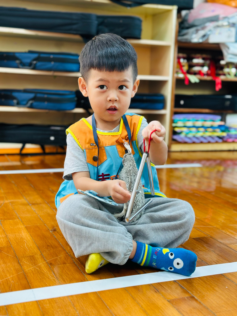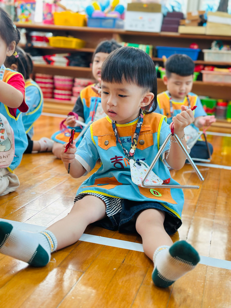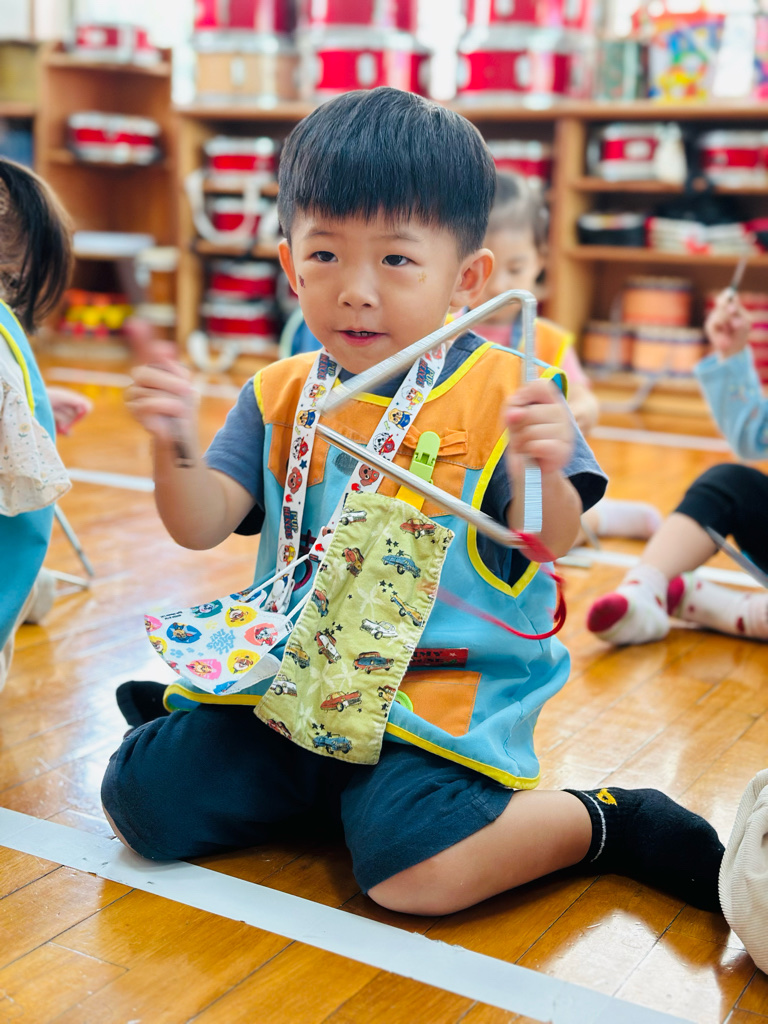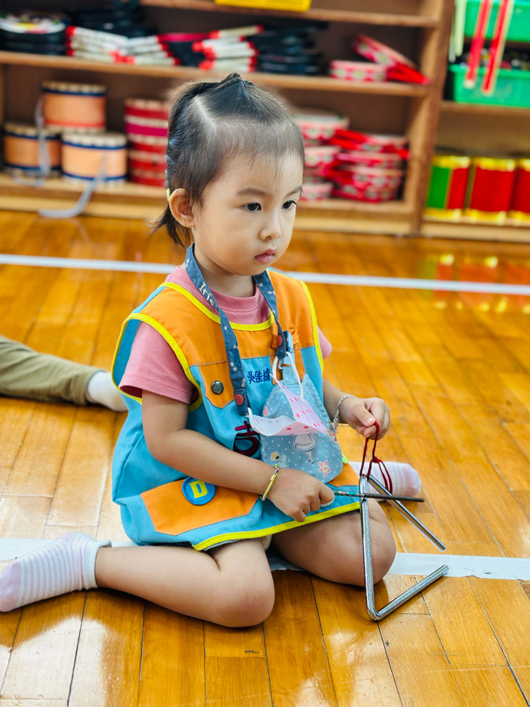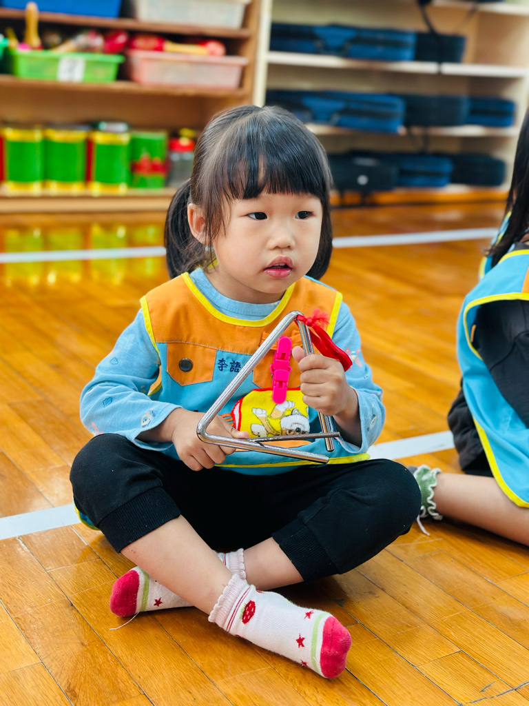 11.05 寶貝們第一次接觸三角鐵唷🎶敲敲看~鈴鈴鈴的聲音真好聽😆