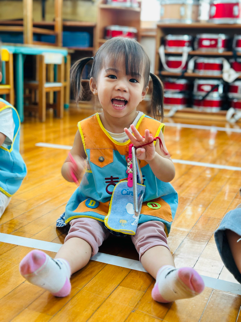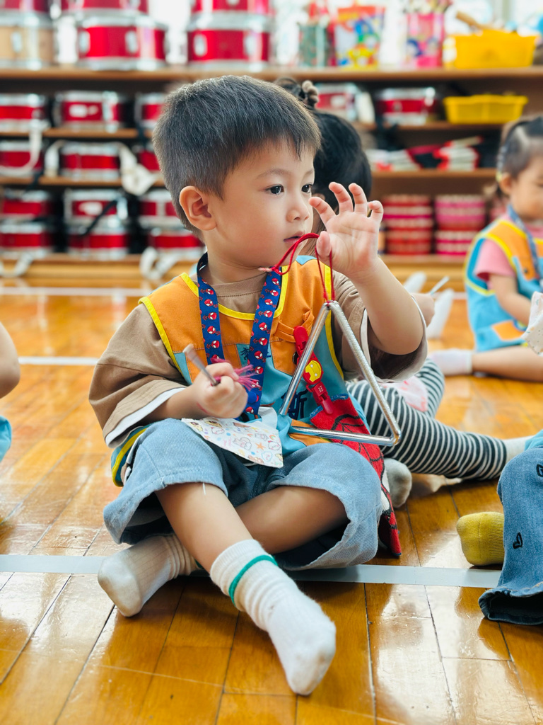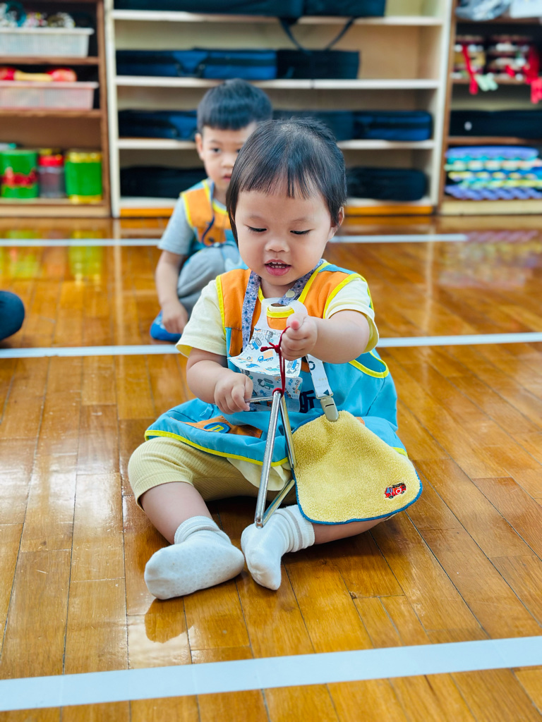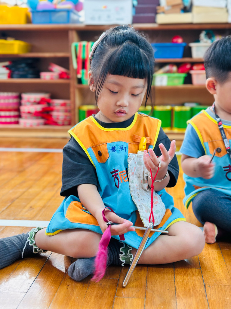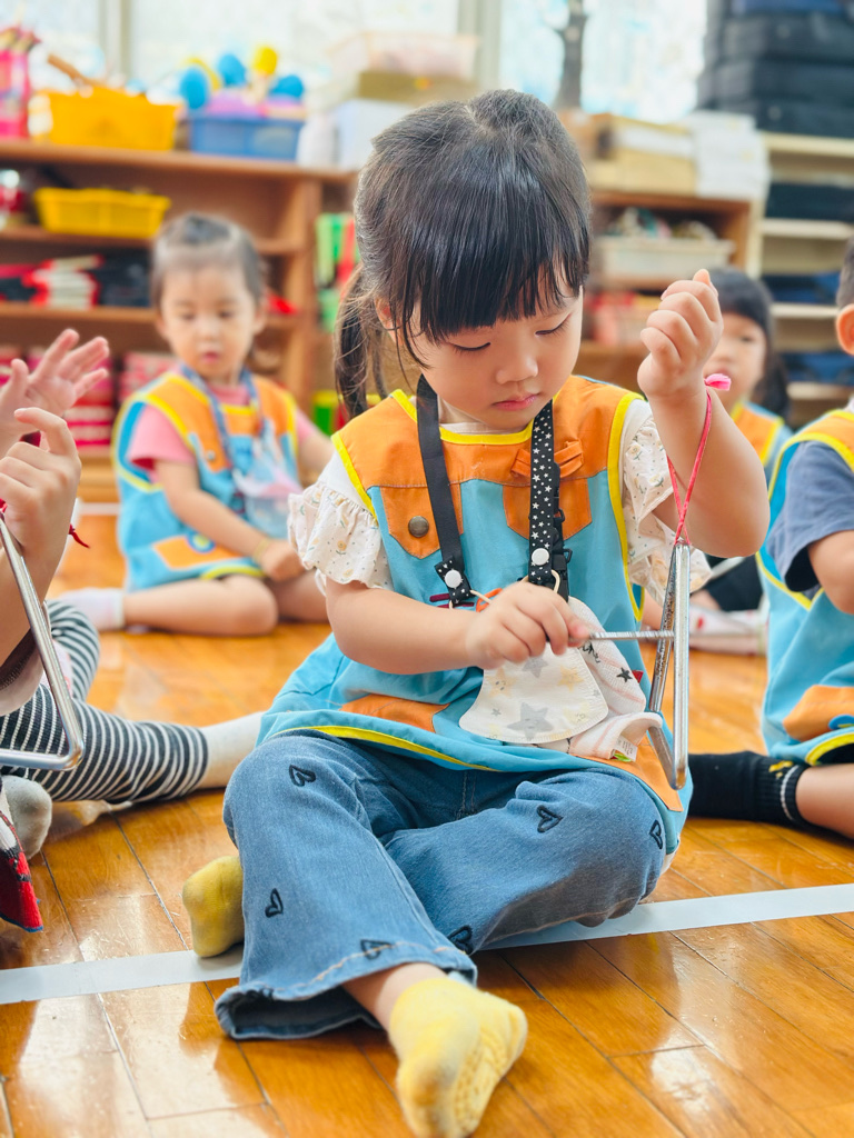 11.05 寶貝們第一次接觸三角鐵唷🎶敲敲看~鈴鈴鈴的聲音真好聽😆