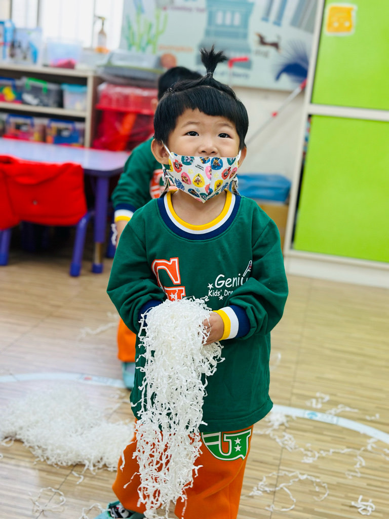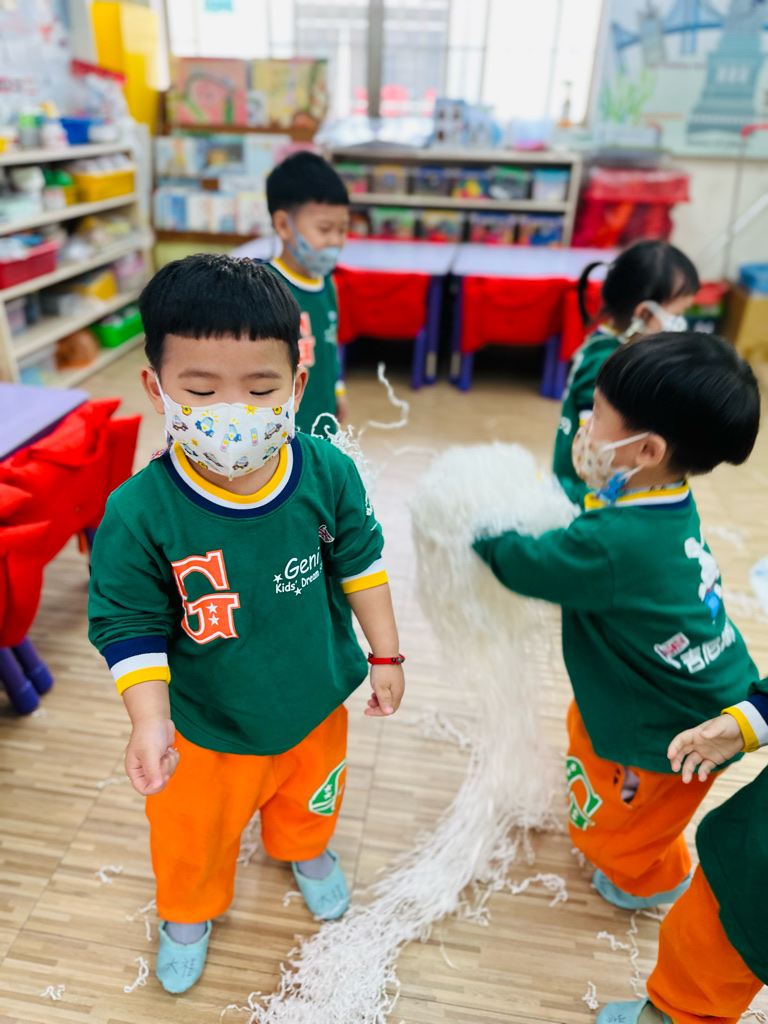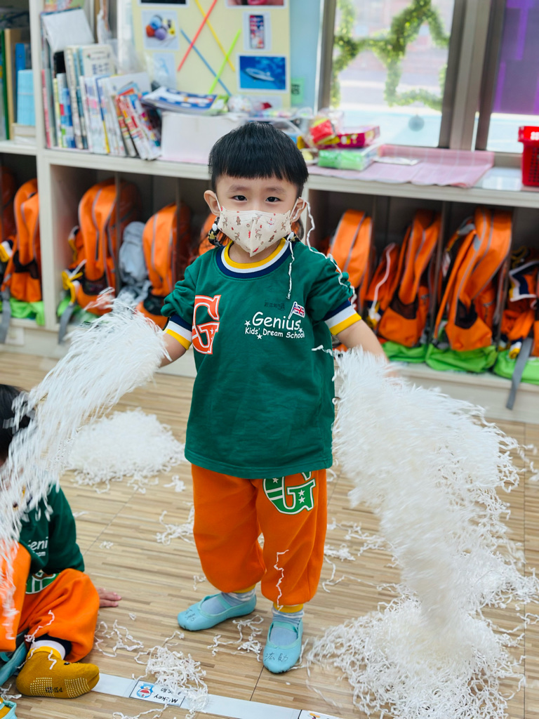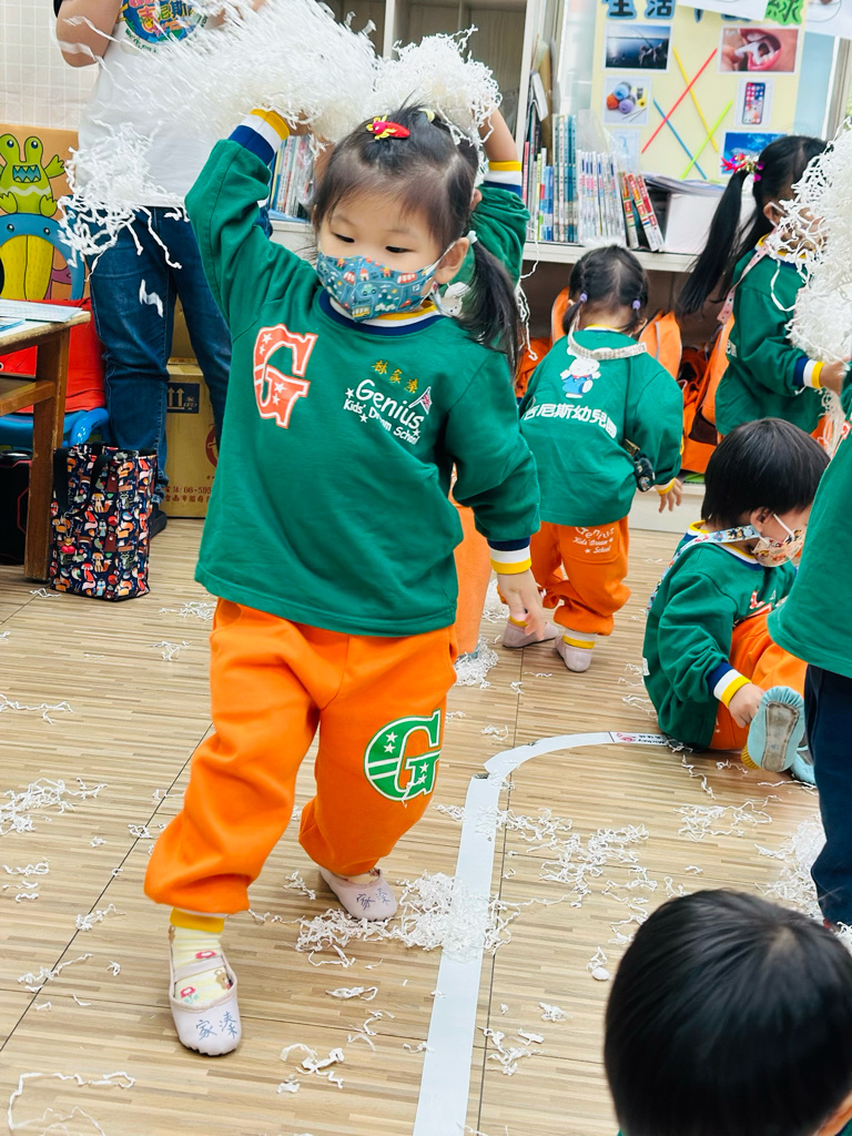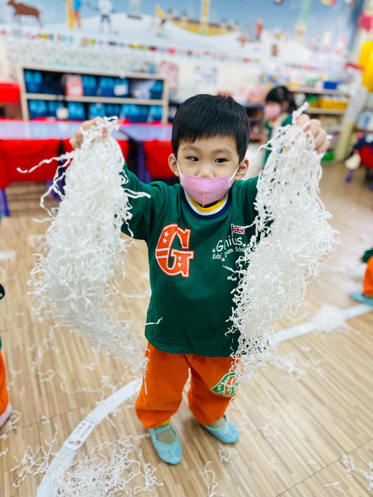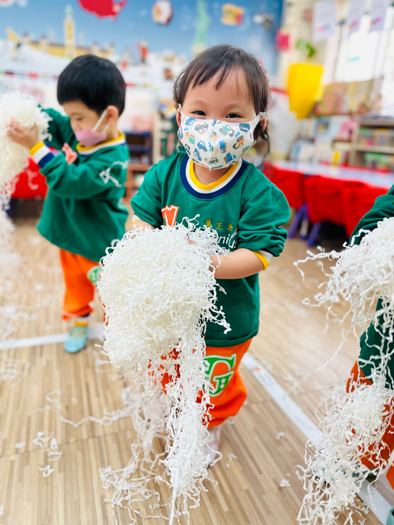 12.23 在教室裡營造白色的下雪世界~讓孩子們感受下雪氛圍❄️他們也玩得超開心唷!⛄️😆