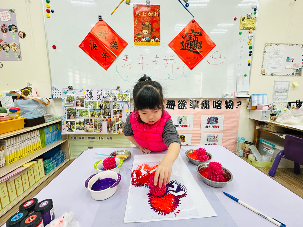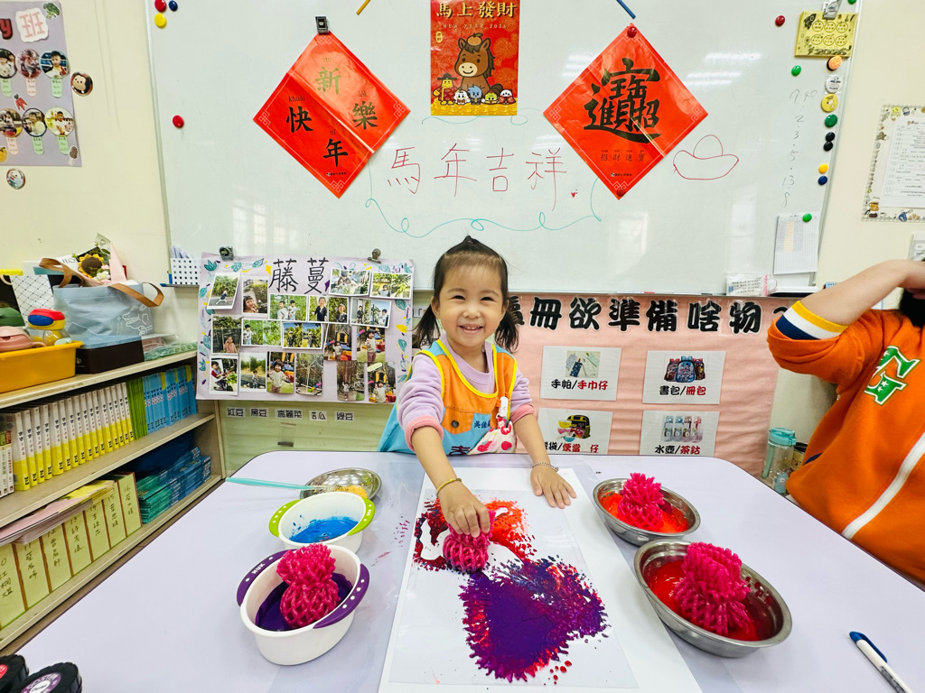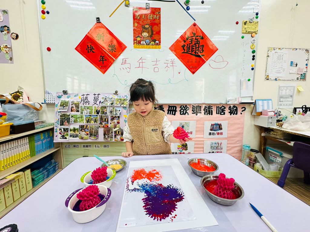利用水果網進行蓋印,利用牙刷刷出馬兒的鬃毛,變成好漂亮的作品呀~🐎💰✨