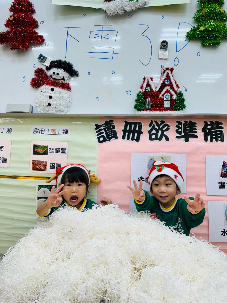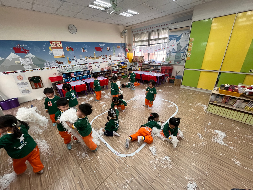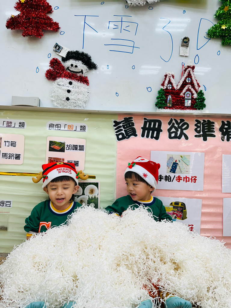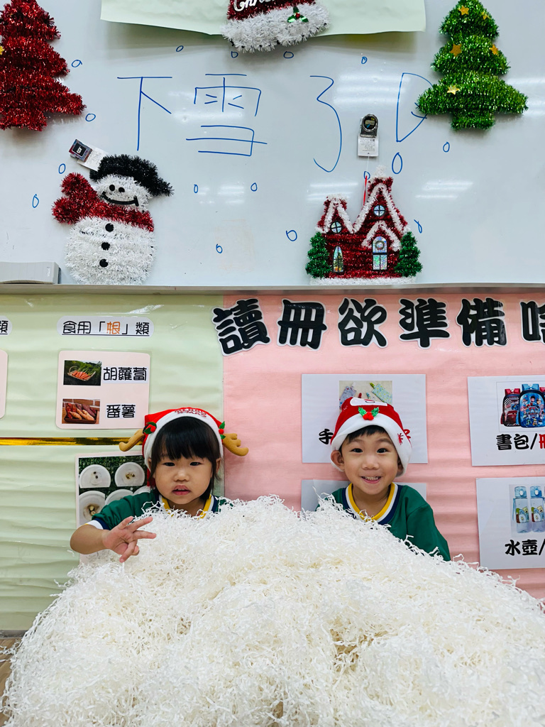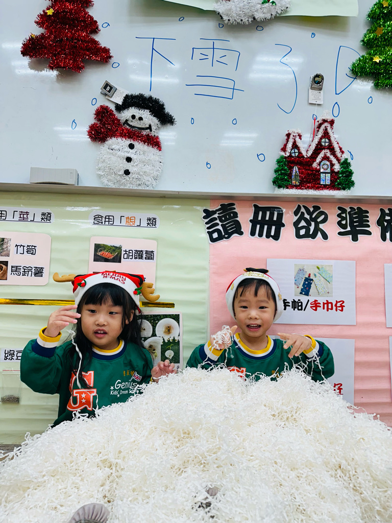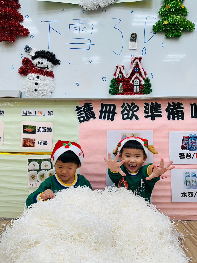 12.23 在教室裡營造白色的下雪世界~讓孩子們感受下雪氛圍❄️他們也玩得超開心唷!⛄️😆